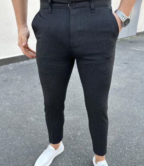 | Popis | Pánske elegantné tmavo sivé nohavice, zapínanie na zips a gombík, dve predné vrecká, dve zadné vrecká. |