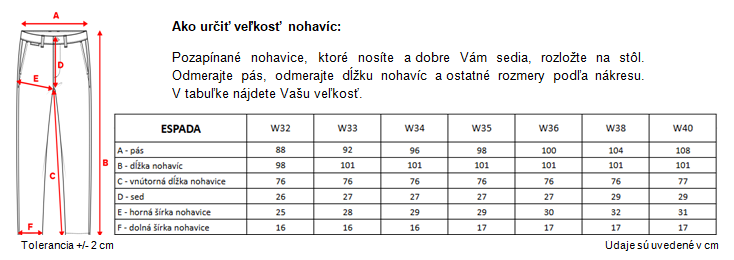 Dostupné veľkosti