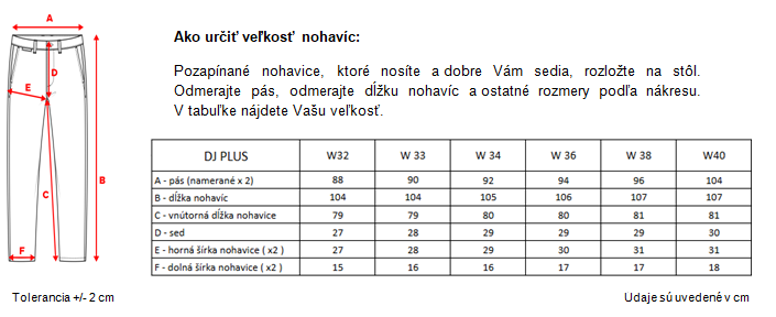 | Dostupné veľkosti | W 32, W 33, W 34, W 36, W 38, W 40 |