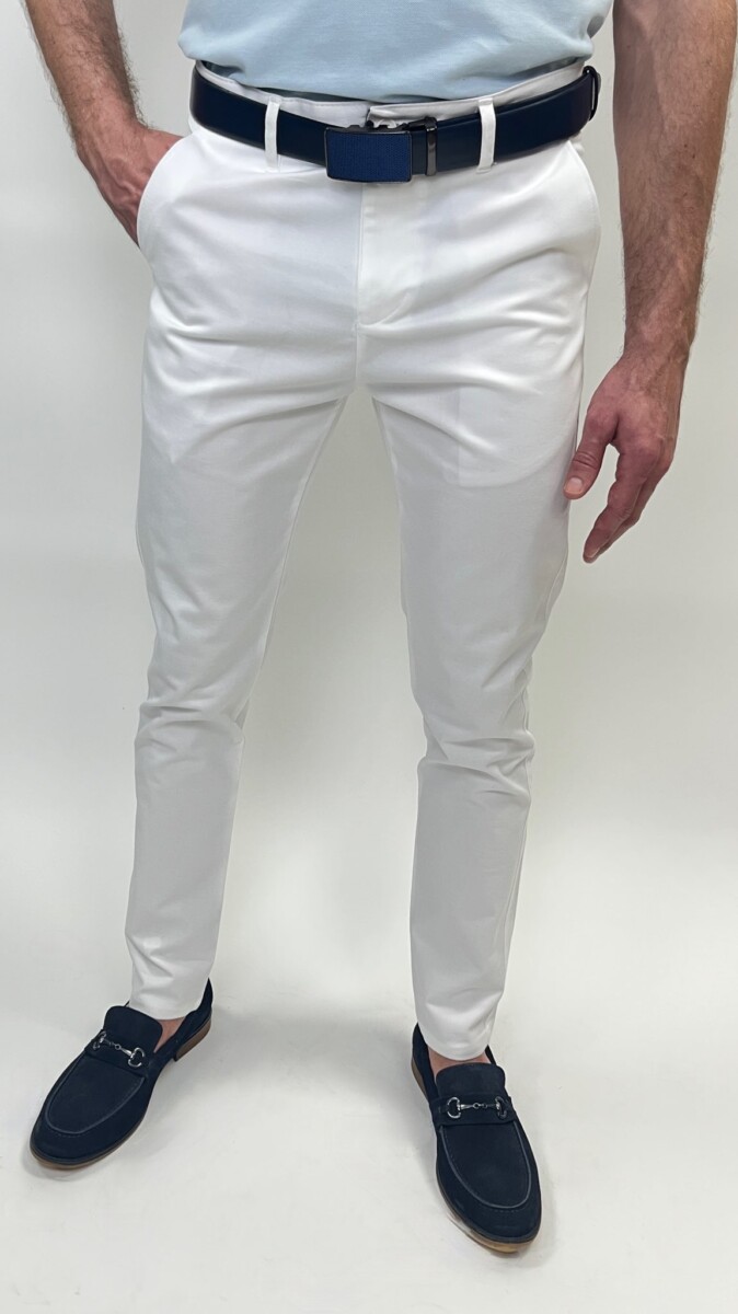 Elegantné nohavice s čistými líniami určené pre moderného muža, ktorý chce pôsobiť sebavedomo a profesionálne.