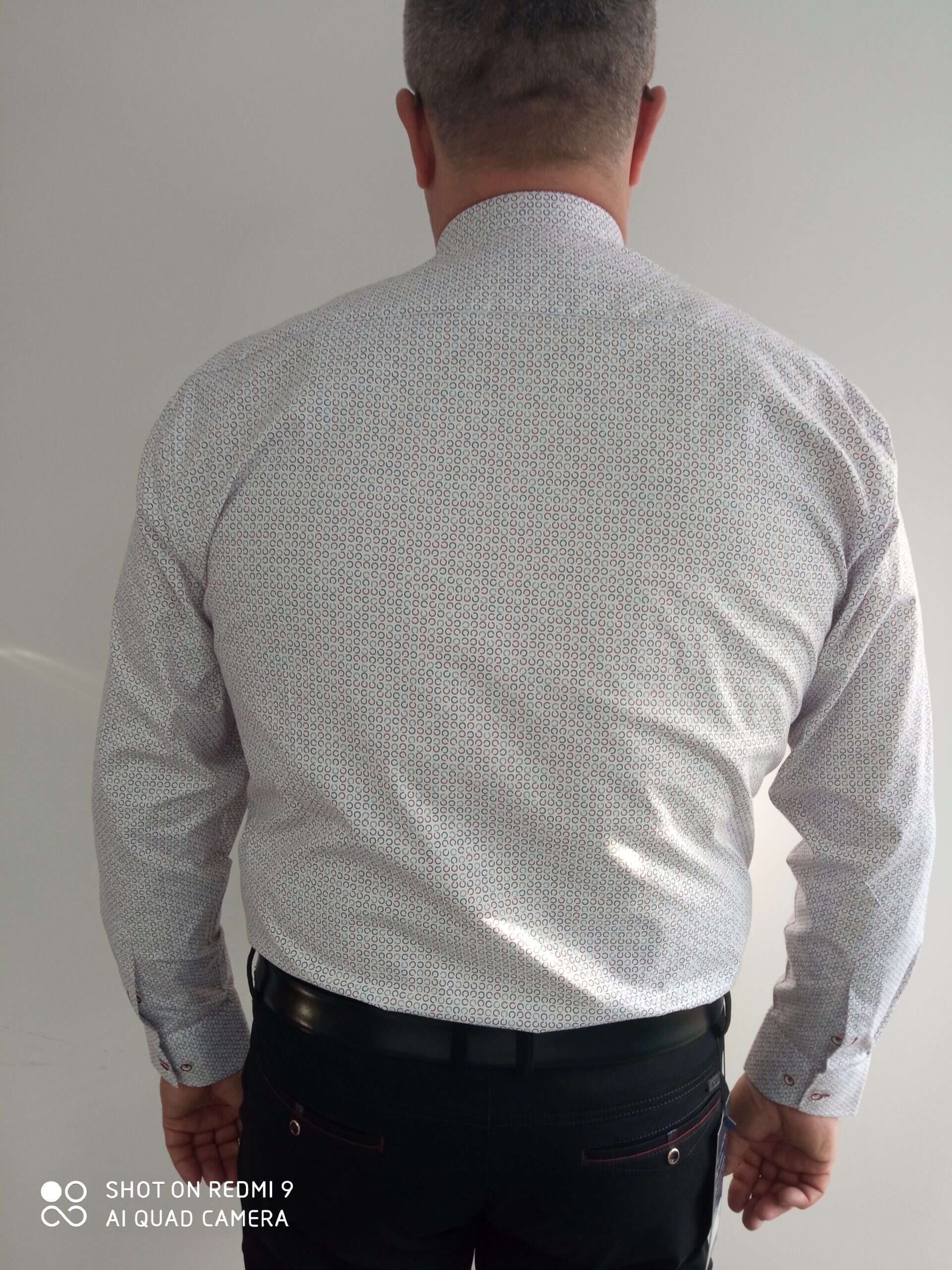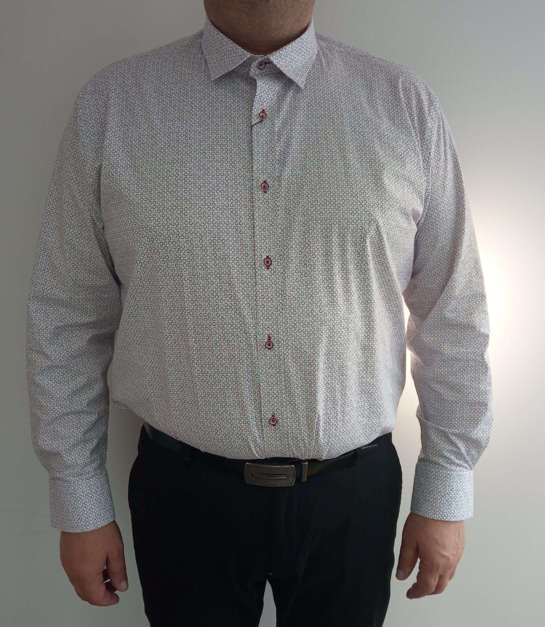 Elegantná biela košeľa so vzorom, zapínanie na gombíky, golierik, strih slim fit.