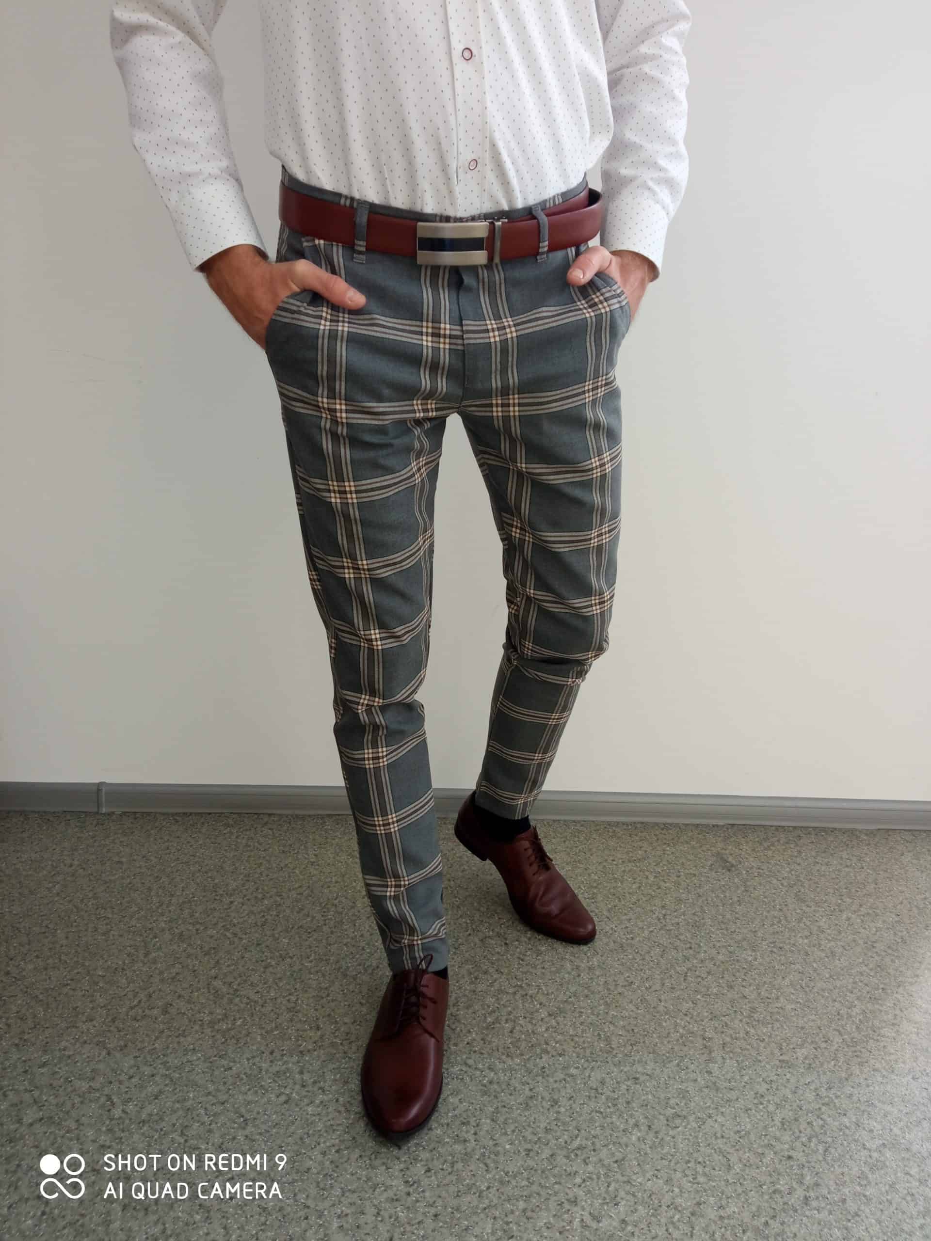 | Popis | Pánske elegantné nohavice, farba tmavosivá, zapínanie na zips a gombík, dve predné vrecká, dve zadné vrecká. |