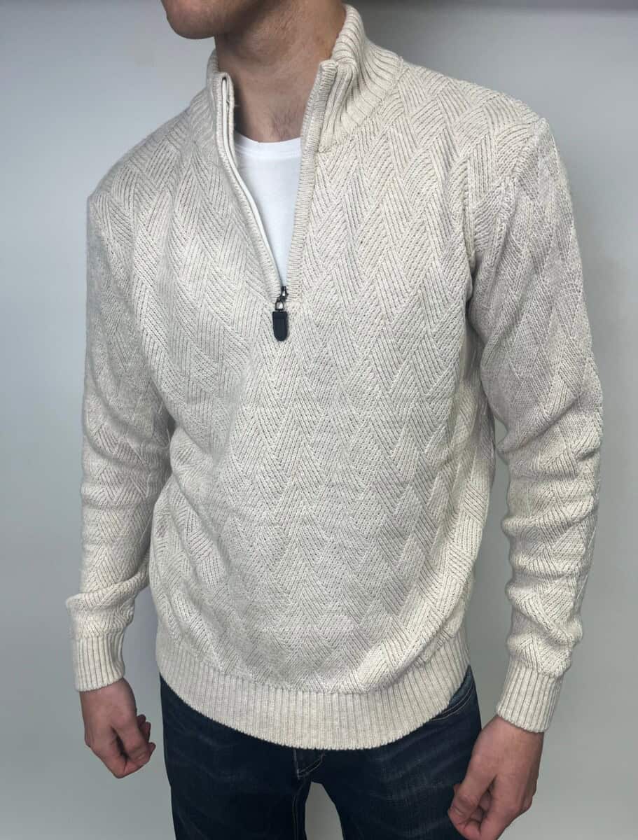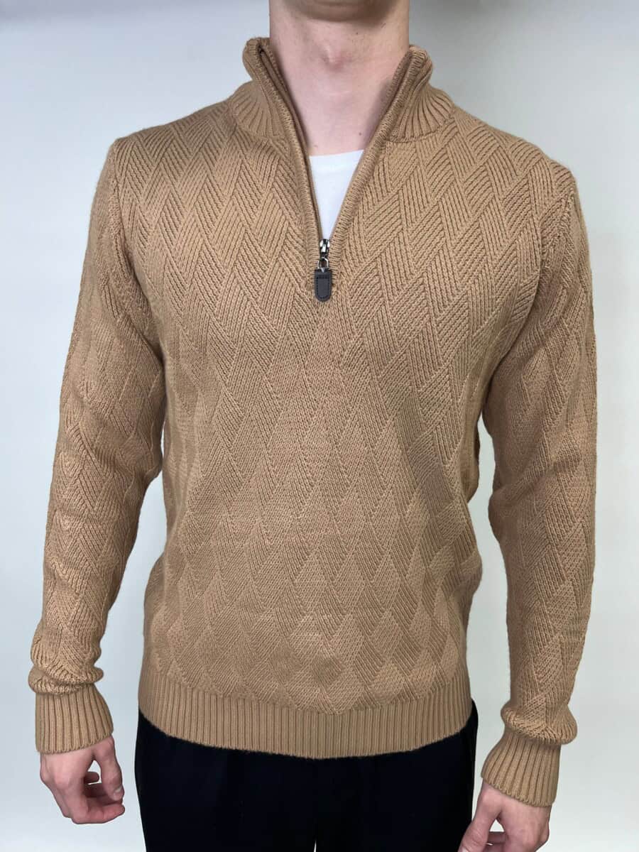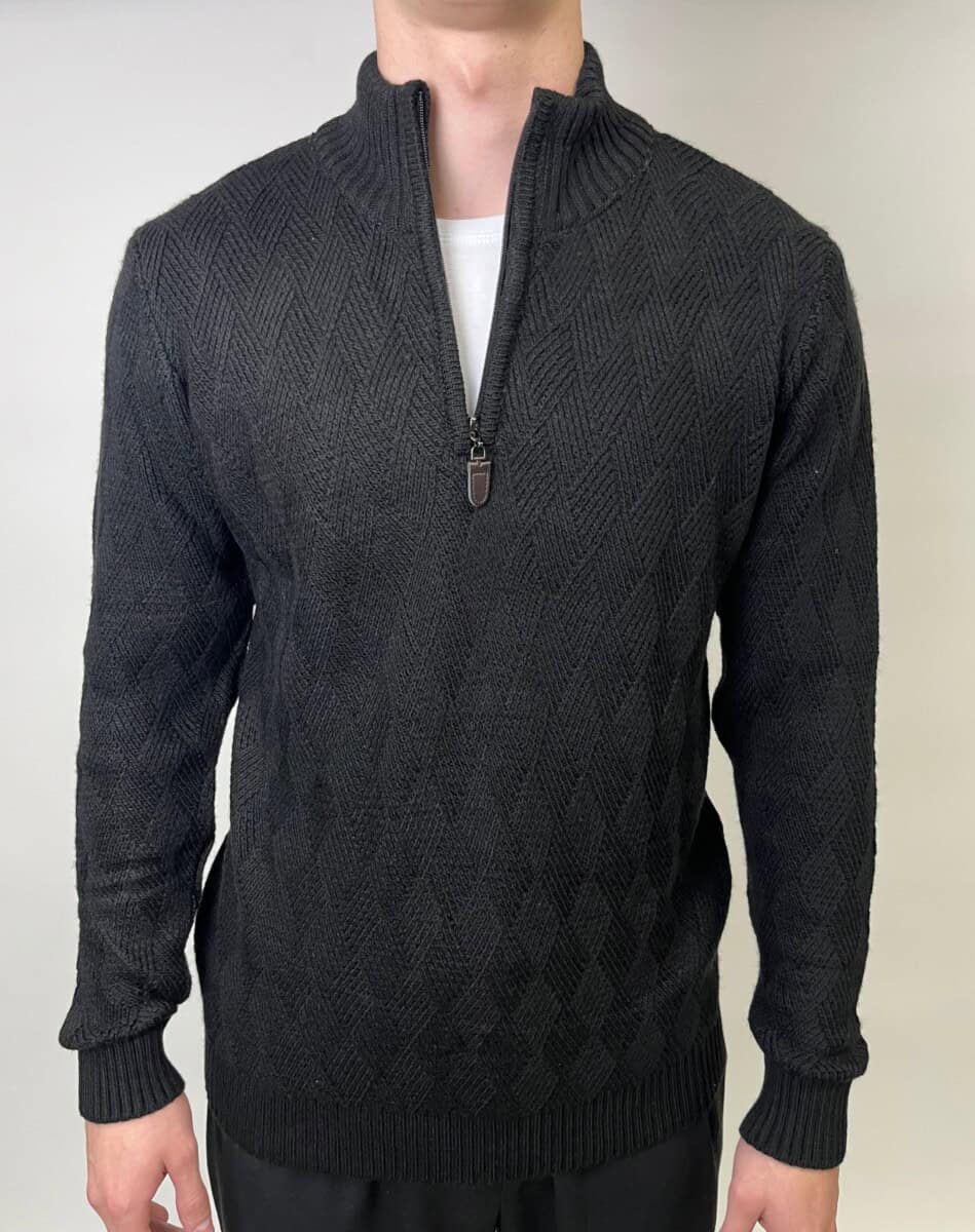 Moderný úplet so zipsom, vhodný do práce aj voľného času.