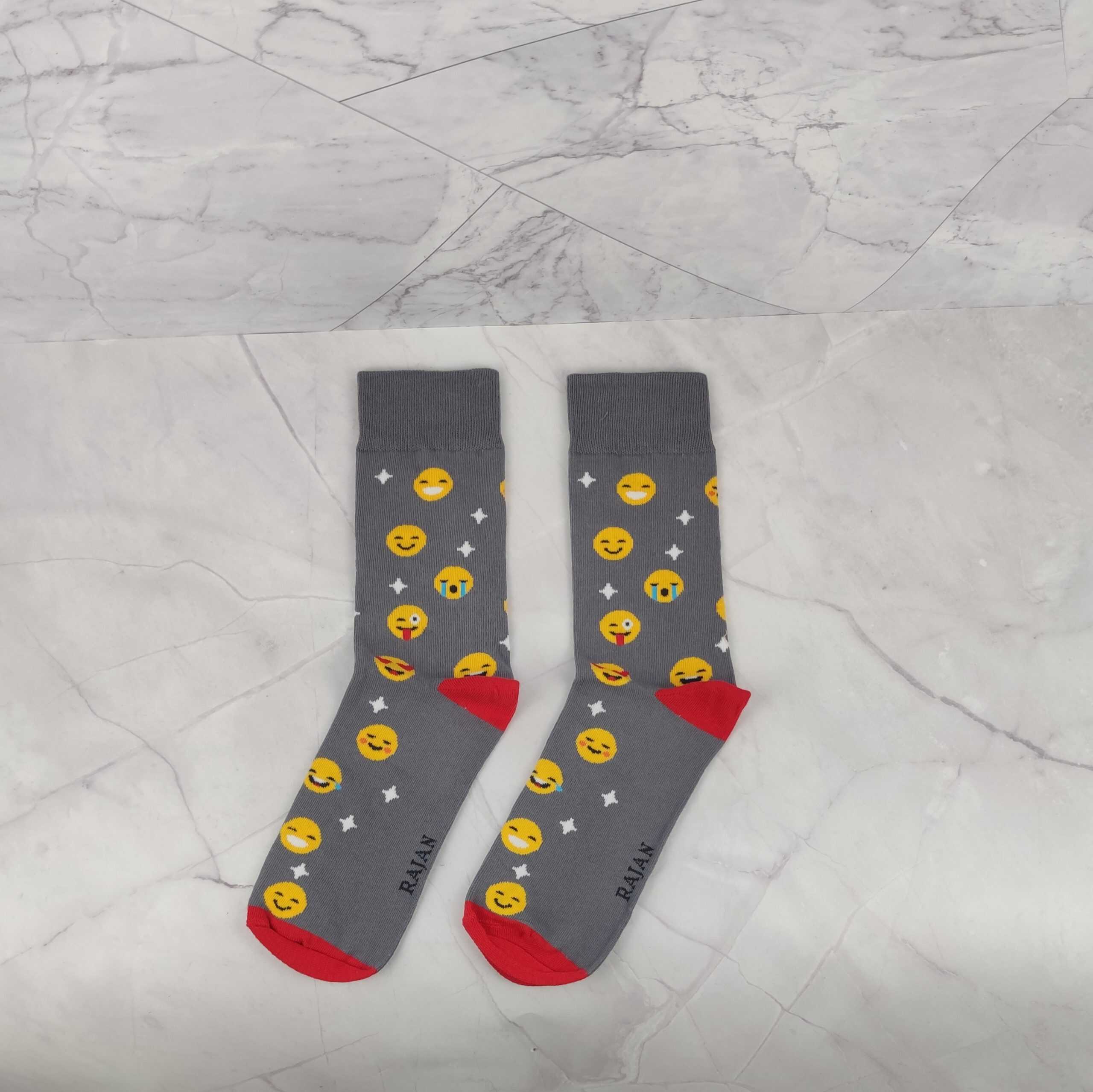 | Popis | Pánske veselé ponožky, farba svetlosivá, vzor smajlíky. |